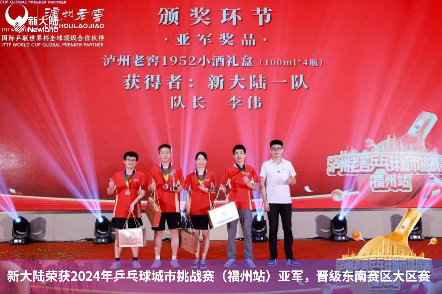 近日,由福州市安井乒乓球俱樂部承辦的2024年瀘州老窖乒乓球城市挑戰賽福州站比賽落下帷幕。本次比賽共吸引了16支隊伍報名參賽,匯聚了100余名乒乓球愛好者。來自軟件公司、支付公司和通信公司的7名員工組成兩支隊伍代表公司參賽。經過緊張刺激的小組賽和淘汰賽,新大陸一隊榮獲第二名,晉級東南賽區半決賽。新大陸二隊則取得了第五名的優異成績。