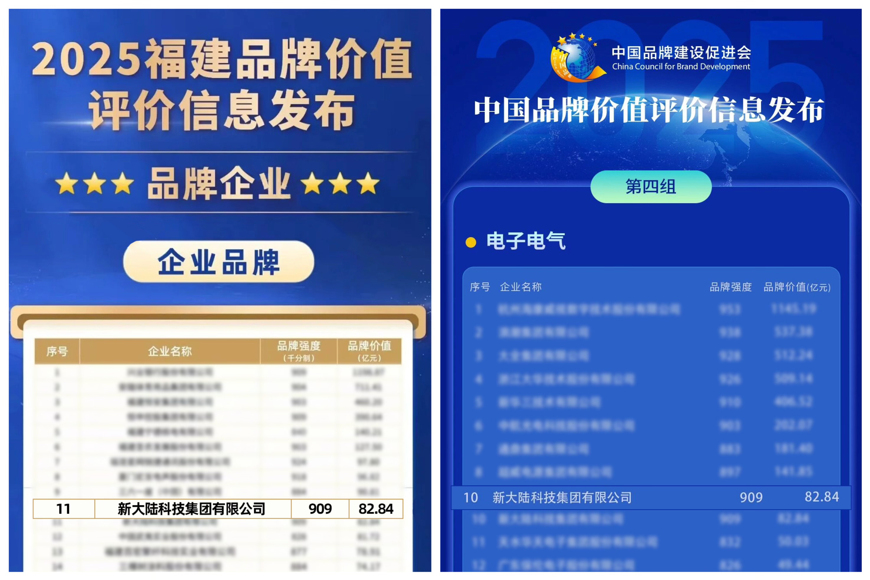 近日,2025“中國品牌價值評價信息”和“福建品牌價值評價信息”發(fā)布。新大陸再度上榜,位列中國電子電氣領(lǐng)域第十,福建品牌百強(qiáng)、企業(yè)品牌類第十一。